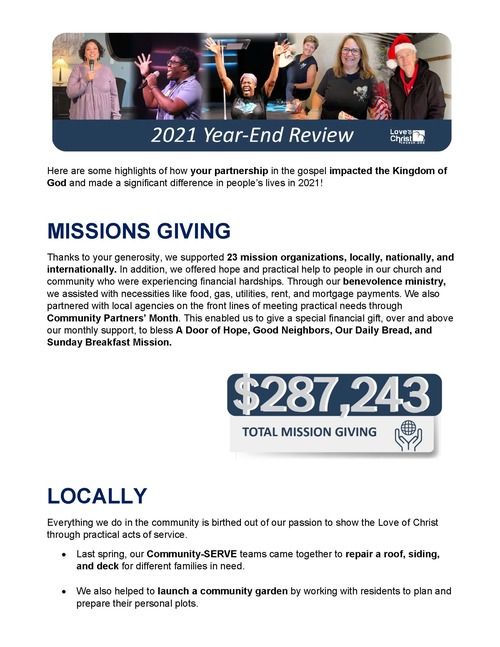 • Missions/Outreach